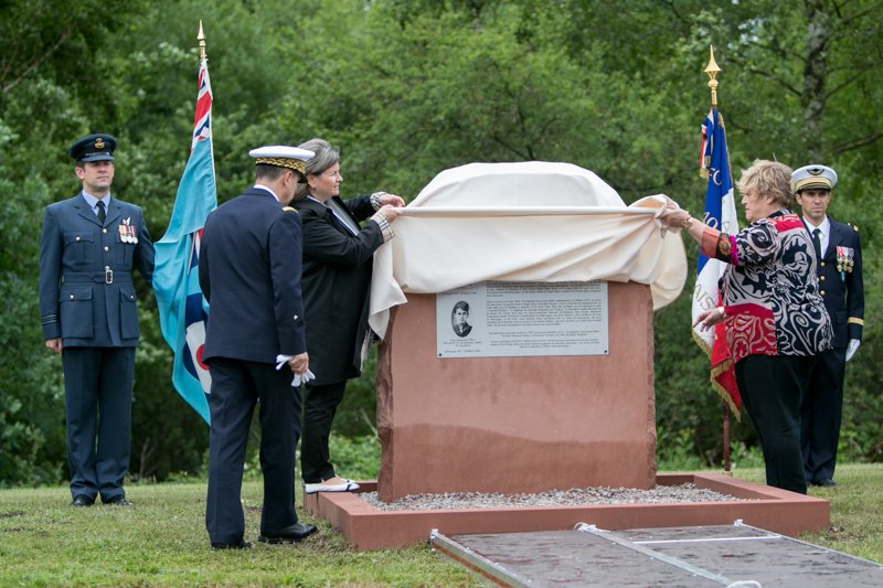During the ceremony, family members from these airmen placed wreaths on the memorial after Bushell’s niece, Caroline Kennard and Scheidhauer’s great niece, Christelle Magnee, unveiled the memorial. American and British Air Force and local community officials also dedicated a memorial plaque to honor these two great airmen.