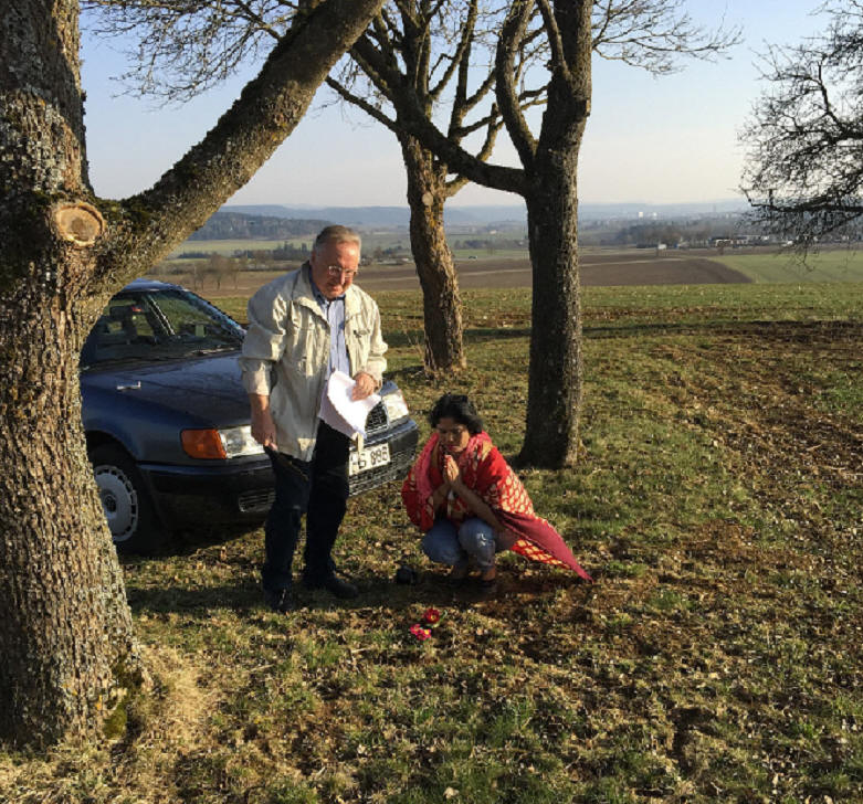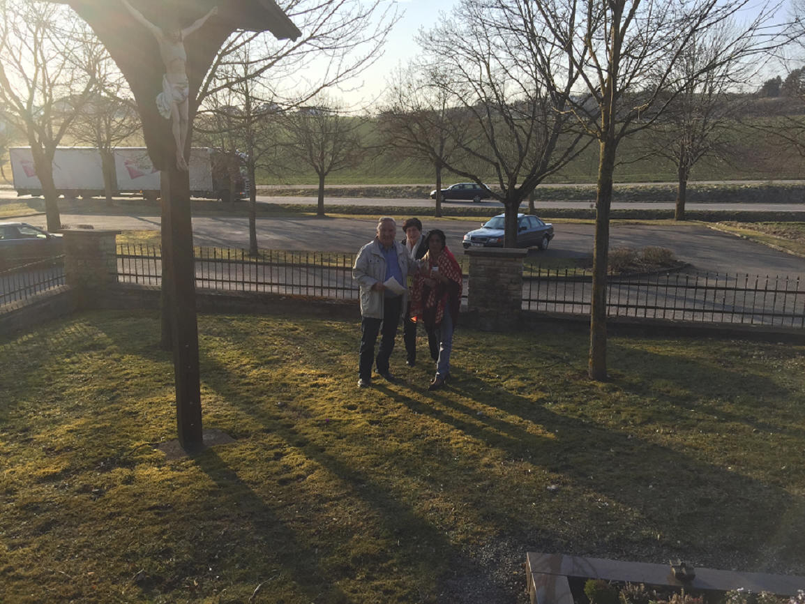 Mayor Emeritus Burkard, Mrs. Burkard and Rasika Wueschner at original internment site Ditiengen Cemetery |