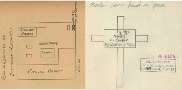 Emotion and gratitude of the descendants In a touching letter, the nephew [Ben Warton], who still lives in Texas USA described what emotions his mother, the sister of Lt. Cooper had to endure. Their mother died early and so she had to take her mother's place. He became the lynchpin of her life and the object of her devotion. The uncle was an iconic figure who even in death has played an important part in the nephews’ lives in formative years and into later years. Their mother was never able to get over the death of her twenty-year old brother. His memory could not be expressed in words. When the nephews, 70 years after his death, thanks to the research of former Mayor Hubert Burkard from Dietingen, were informed of the exact crash site and the exact cause of death in addition to the discovery of aircraft parts and the Aviator cap, they burst into tears. A source of joy for them was finding out about the well maintained aviator cap. If there is a possibility of having something that belonged to him exists, it would be of greater significance to the Nephews than words can easily convey. Thus, closing the circle of mourning and remembrance. Hubert Burkard is grateful to have been connected to this this particularly honorable venture. This is also true for Dr. Silvano Wueschner, Historian 86 Airlift Wing, Ramstein AB. Death of Friend and Foe In death enemy and friend fade. This documentation is dedicated to the memory of the American, but at the same time to the German soldiers who were forced into this excessive and unfortunate war. We should also remember the innocent men, women and children of the civilian population who died or were left to suffer. Mankind has not learned a good deal from this war. Death and suffering, as we see it now in the Ukraine, speak for themselves. May a protective hand nevertheless guide us.